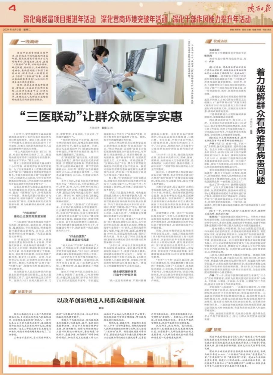 近日,《陕西日报》以《“三医联动”让群众就医享实惠》为题,对六合彩网站