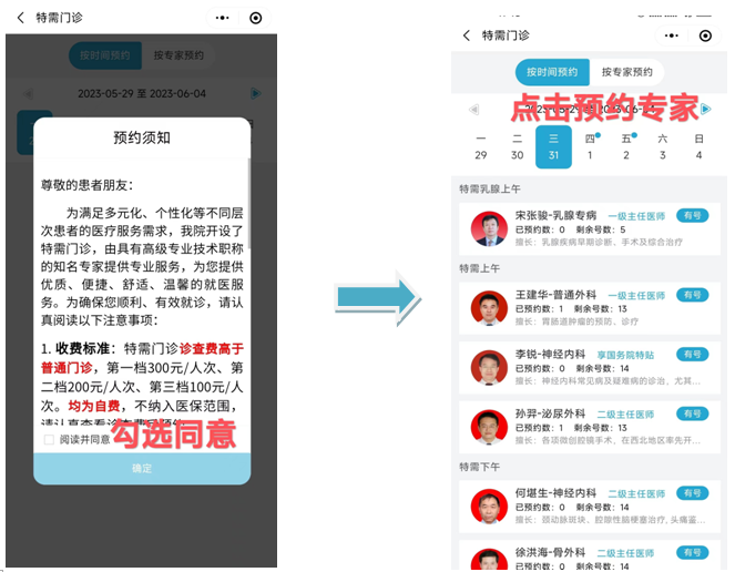 (3) 现场预约:门诊大楼南侧特需门诊;