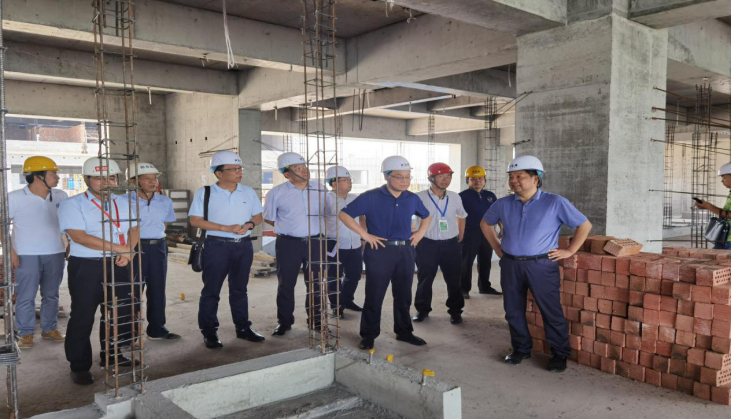 会后,高敬龙书记和马富春副院长在张长生副总经理和任柯副局长的陪同下赶赴医院项目建设现场,冒着酷暑详细察看医院项目建设施工情况,先后参观调研了业已建成的行政楼和医疗A区及正在紧张施工的医技综合区及门诊医疗区,亲自了解和沟通有关设计、施工及装修情况。高书记和马副院长两位领导同时看望了六合彩网站在工地现场辛勤工作的筹建工作组成员。