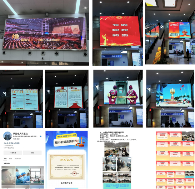 1.在门急诊及住院部大屏循环播放展示了宪法公益宣传片、宪法宣传PPT及海报,在医院公众号播放了宪法公益宣传片。