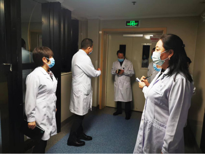 在大家最累、最想松一口气、准备放松的时刻,在喜迎二十大胜利召开、在全面认真贯彻落实国家、省委省政府、省市卫健委疫情防控精神和规定、已采取一切有效防控和防范措施、并时刻保持高度警醒和迅速反应能力基础上,为进一步强化并不断完善疫情防控和安全,织密织牢医院疫情防控网、医院安全网,喜迎党的二十大胜利召开,宋张骏院长专门指导安排了一次周末班后疫情防控和安全夜间突击查房,主要相关职能处室部门负责人参加。