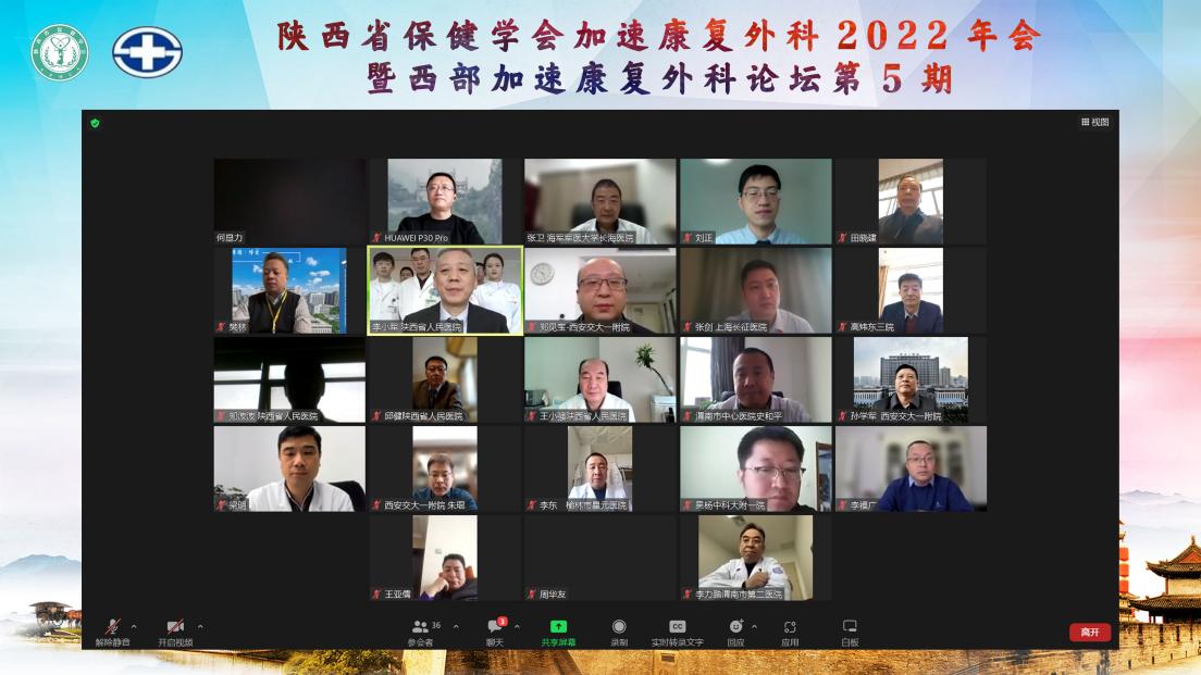 11月12日,由陕西省保健学会加速康复外科专委会主办,六合彩网站协办的陕西省保健学会加速康复外科专委会2022年会暨西部加速康复外科论坛第5期于线上如期举行。会议以“提高手术技艺、减少手术并发症,促践行ERAS”为主题,外科、麻醉、护理三大分会场同时进行,邀请来自北京、上海、广州、福建、四川、重庆、河南、安徽等地的20位全国知名专家以及省内学者共计84位专家共同探讨,吸引1.5万余人次在线观看。