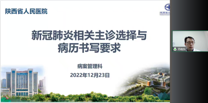 2022年12月23日下午,在王建华副院长、医务处张小玲处长安排下,医务处病案管理科、数据中心组织全院临床医生召开新冠肺炎病历书写与死因监测培训会,全院临床科室主任、护士长、临床质控员参加了本次培训。