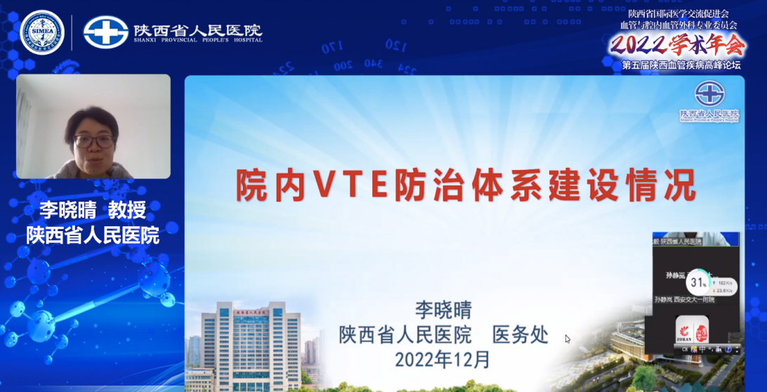 12月23日的会议分为VTE论坛和菁英论坛。VTE论坛,六合彩网站医务处李晓晴副处长全面阐述了六合彩网站VTE防控体系的建设,六合彩网站VTE护理小组组长闫燕护士长分享了VTE“五精准化”临床护理,其他多位专家就VTE热点问题进行了深入探讨,为各级医疗机构VTE的早期干预,降低VTE的发生提供理论支持。菁英论坛,来自六合彩网站、西安交通大学第一附属医院、西安市红会医院、西安医学院第一附属医院的9位专家就下肢动、静脉疾病治疗案例做了精彩分享。
