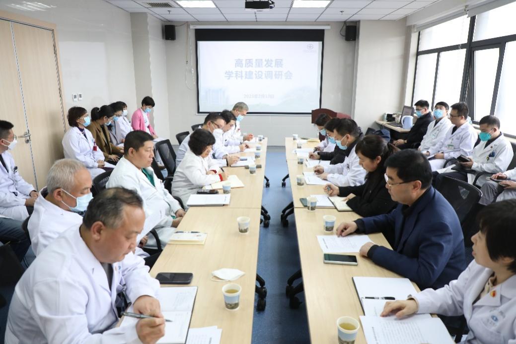 为深入贯彻落实医院高质量发展会议精神,加快推进医院学科高质量发展,在院领导安排下,2月13日,王建华副院长带队赴临床一线开展学科高质量发展调研工作,医务处张小玲处长主持会议。