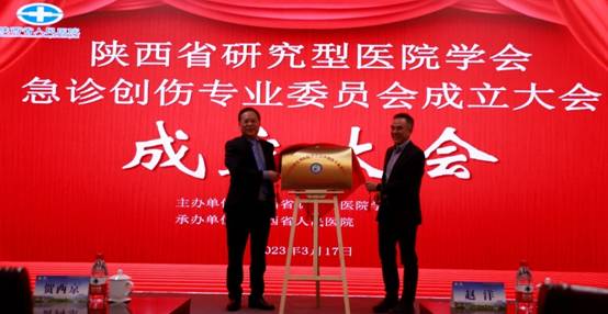随后,贺西京会长与王建华副院长共同为陕西省研究型医院学会急诊创伤专业委员会揭牌。