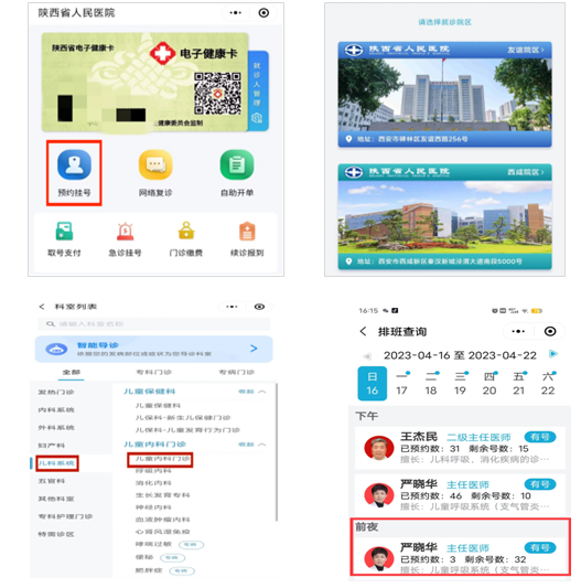 ”微信小程序;选择就诊院区“友谊院区”;在“儿科系统”中选择“儿童内科门诊”;再选择“前夜专家”点击进入,即可预约儿童夜间专家门诊,夜间号“即约即取”。预约成功后,请按照约定就诊时间前来就诊。