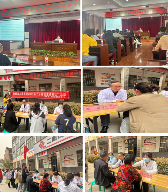 2023年4月15日-21日是第29个肿瘤防治宣传周,为普及居民肿瘤防治知识,提升居民科学防癌意识,4月20日,健康体检中心党支部积极响应医院“千名医生进社区”活动号召,在隋永杰主任带领、杜洁副主任组织下,联合心内一科梁磊主任等医护人员前往周至县二曲街道云塔社区举行科普知识宣传和大型义诊活动。