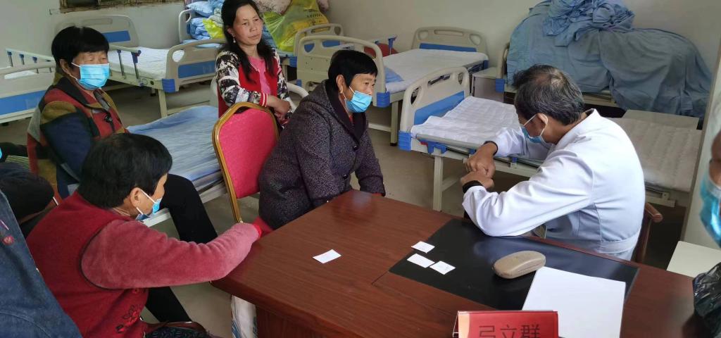 7点30分,由离退休办梁增利同志带队的医疗专家们一行12人驱车前往蓝田县安村镇安村、府庄村。由于当地政府前期做了广泛宣传,前来就诊咨询的村民除了安村、府庄的以外,还有吴庄、马沟的村民。就诊咨询的村民分别在安村镇安村、府庄村委会广场排好队,等候医疗专家们的到来。看到村民这么热情,消化内二科吴友伟主任、心血管内三科邢坤、骨科罗振群、心内科李珉、中医科吉海旺主任医师、神经内科郭民侠、种莉主任医师等九位医疗专家立即投入到工作中去。