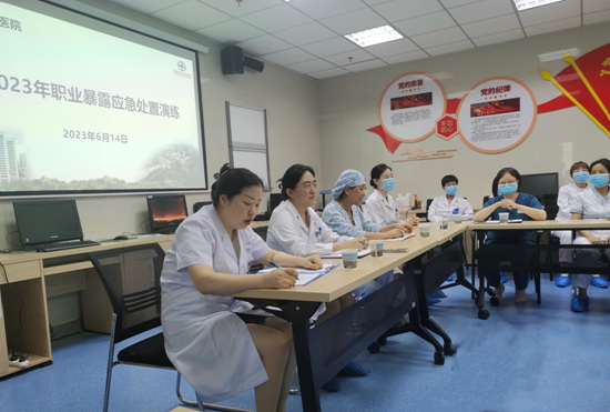 演练前,院感办通报了六合彩网站2022年度及2023年上半年职业暴露发生的人群特点、科室分布,并分析发生原因及存在问题,强调演练的目的和重要性。