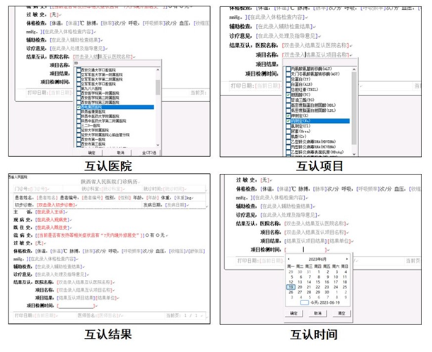 为加快推进全院检验结果互认工作落地落实落细,为患者和临床最大限度提供便捷,减轻负担,王建华副院长明确要求做到“四有”:一有方案,医院制定的检验结果互认方案要细、要实,便于临床科室掌握和操作;二有培训,结合临床科室科务会、交班会,从互认医院、互认标识、互认项目、互认流程给临床医生讲清讲透,做到人人知晓;三有落实,要发挥信息化作用,将目前全省互认的76家医院和19个互认项目,全部以模板形式维护到信息系统,出诊医生看到患者提供的检验报告单上标注有(陕HR)的互认项目,直接在门诊病历上选择互认医院、互认项目、互认结果和互认时间即可,全部实现电子化,不用手动录入;四有监督,要定期对临床科室开展检验结果互认情况进行检查,对临床科室执行情况进行负性记录考核,在不影响疾病诊疗、保证医疗质量安全的前提下,接诊医生对患者提供检验报告单中标注“陕HR”互认标识的检验结果应认尽认,并持续开展监督、反馈、整改,确保工作实效。