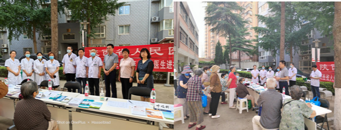 义诊开始,预防保健科、内分泌科、呼吸科、心血管科、消化科等科室的医生们积极询问社区居民的身体状况,耐心听取居民群众问题,悉心讲解健康常识,认真宣传疾病预防知识,提供免费测量血压、血糖等服务。