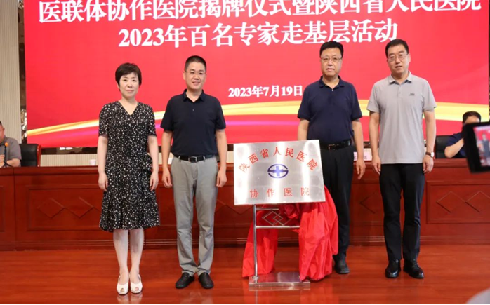 米涛副院长一行与当地县政府领导、卫健局领导进行座谈交流,与各个医院领导对党建引领、学科共建、科研共享、管理轮训、双向转诊、信息化建设等方面进行深入交流。各位主任还深入各区县医院相关科室与科室主任就学科共建进行一对一交流,并对30余名疑难患者进行会诊,科与科之间建立起顺畅的转诊通道。在岐山县医院举行了义诊,在千阳县人民医院、宝鸡市陈仓医院举行了协作医院揭牌仪式。