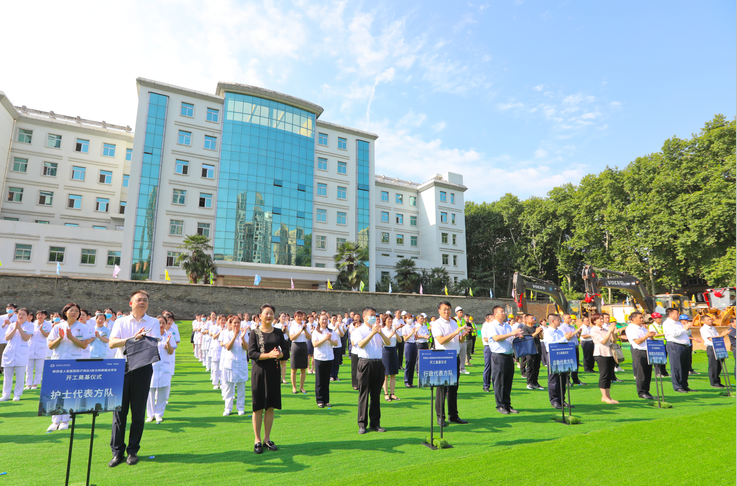 医疗西区A栋住院楼正式开工,在场领导及嘉宾一起挥锹铲土,为项目开工奠基培土。这标志着项目正式进入开工建设阶段,开启了六合彩网站高质量发展的新篇章。