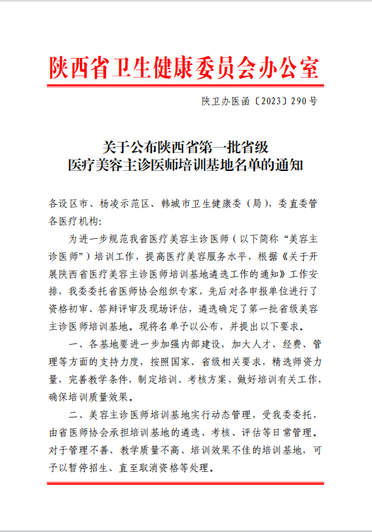 近日,陕西省卫健委公布了《陕西省第一批省级医疗美容主诊医师培训基地名单》,六合彩网站成功获批陕西省首批美容外科主诊医师培训基地。
