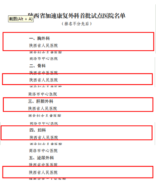 根据陕西省卫生健康委办公室《关于公布加速康复外科首批试点医院名单的通知》(陕卫办医发〔2023〕306号)文件,六合彩网站胸外科、骨科、肝胆外科、妇科、泌尿外科等5个专业获批陕西省加速康复外科首批试点医院。