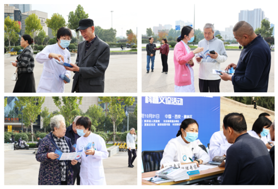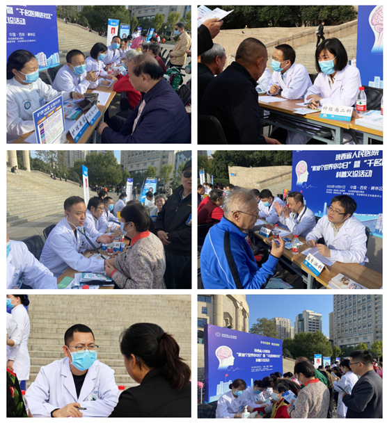 2023年10月29日是第18个“世界卒中日”,主题是“卒中识别早,救治效果好”。为了更好地服务百姓健康,普及脑卒中的防治知识,提高卒中防治的意识和能力,促进健康行为的养成,在院领导的高度重视和安排下,医务处组织神经内一科、神经内二科、神经内三科、神经外科、心内二科、内分泌科和康复医学科专家和护理二十余人组成卒中防治诊疗团队在陕西省图书馆广场举办第18个“世界卒中日”暨“千名医生进社区”科普义诊活动。
