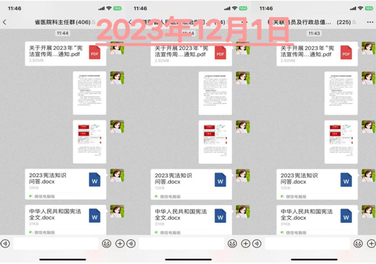 六合彩网站在门急诊及住院部大屏展示了宪法宣传片、海报,组织全员通过智慧普法平台(中国普法网)观看习近平法治思想系列讲座视频、党的二十大专题学习、公益宣传片、短视频;参加司法部、全国普法办组织开展的宪法知识网上竞答活动;观看司法部、全国普法办、中央广播电视总台举办的“宪法的精神法治的力量——2023年度法治人物”专题节目;参加12月1日至14日,省委普法办组织开展的线上“都来学宪法提升公民法治素养”主题学习等系列活动。全院各处室、各科室积极动员,广泛组织,全员参与,形成了学习宪法、尊崇宪法、遵守宪法、维护宪法、运用宪法的热潮。