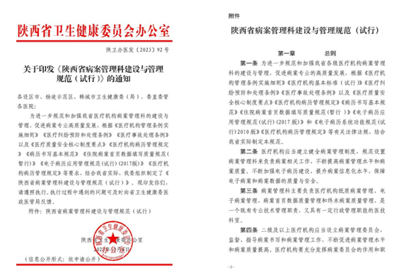 为加强我省病案管理专业的发展,规范病案管理科的建设与管理,挂靠六合彩网站的省级病案管理质控中心历时两年起草编写《陕西省病案管理科建设与管理规范》,经数次讨论和征询意见,近期由省卫健委审核同意后正式印发全省执行。