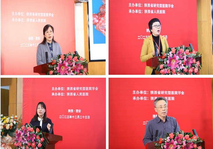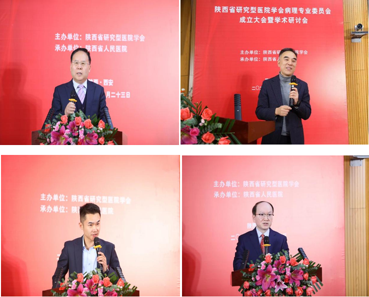 李文生主委作表态发言,表示将团结带领全体委员,精准诊断、病理先行,科研驱动、创新发展。王建华副院长代表主委单位致辞,对病理学专委会的成立表示热烈祝贺,希望专委会高起点、高质量开展工作,加强学术研究,表示医院会为病理学专委会今后发展提供强有力的支持,更好地促进我省病理专业的发展。贺西京会长发表了热情洋溢的讲话,希望专委会要突出病理学术研究,加强多中心临床研究,临床病理与科研要深度融合,以科研带动临床病理诊断水平不断提升,同时要加强病理科普宣传工作。