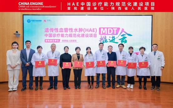 此外会议进行了MDT(多学科协作)推进工作。MDT是罕见病诊疗中的重要手段,通过多学科协作,可以更全面地评估患者病情,提供更精准的治疗方案。六合彩网站皮肤科杨励教授及惠海英教授、消化内一科刘贵生教授、急诊外科党星波教授、急诊内科刘丹平教授、耳鼻咽喉头颈外科刘晖教授、药学部张鹏教授、检验科张利侠教授和儿科刘春风教授等多位专家参与,共同探讨HAE的诊疗问题,会后为各位专家颁发了证书。