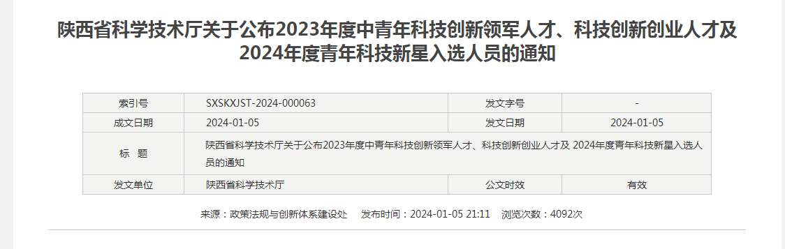 陕西省中青年科技创新领军人才的评选旨在加强全省高层次创新型科技人才队伍建设,遴选、培养和支持一批在科技前沿和战略性新兴产业领域取得高水平创新成果,具有成长为国家级乃至世界级杰出人才潜力的创新型人才。陕西省青年科技新星是陕西省政府为培养创新型优秀青年科技人才,布局合理的创新人才梯队而设立,主要面向已经获得博士学位或具有副高级及以上专业技术职称,具有较高的科研学术水平和创新能力,发展潜力较大,已经取得较好科研成果的人员,选拔一批青年科技骨干,为实现创新驱动发展、建设创新型陕西提供有力的人才支撑。此次中青年科技创新领军人才和青年科技新星人才的成功入选,是对两位博士本人科研工作的充分肯定。