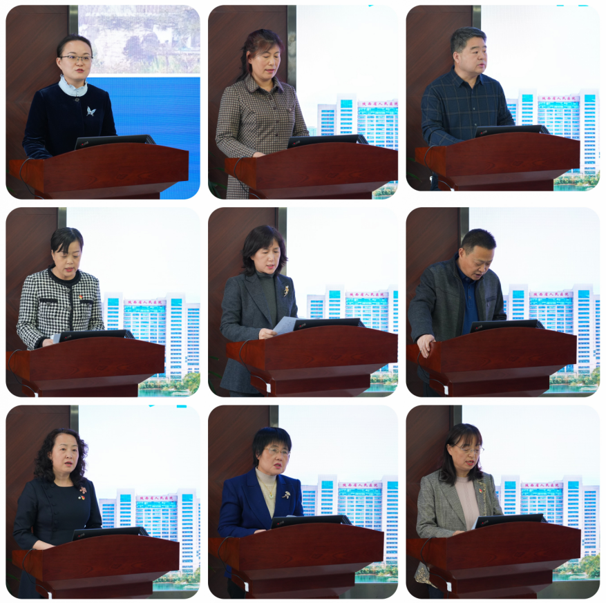 岁回律转,万象更新!2023年在院党委和班子的坚强领导下,凝心聚力、锐意进取,铆足干劲、迎难而上,倾尽全力全面贯彻落实医院高质量发展方案和五个细化方案!在忙碌奋斗中时间总是过得飞快,转眼又到了总结盘点的时刻!在党委和党政主要领导的指导安排下,经过院办前期的充分筹备,1月11日下午,组织召开2023年度行政管理及党建工作述职大会。全院行政处室、部门、专项工作办公室、各党总支共38个一一上台,在4分钟时间内汇报创新、亮点、增量工作,兼职支部书记同时增加2分钟汇报支部工作,并进行满意度互评。党政领导班子全体成员、总支书记、行政处室部门正、副处长、助理、科长、总护士长参加。宋张骏院长主持。