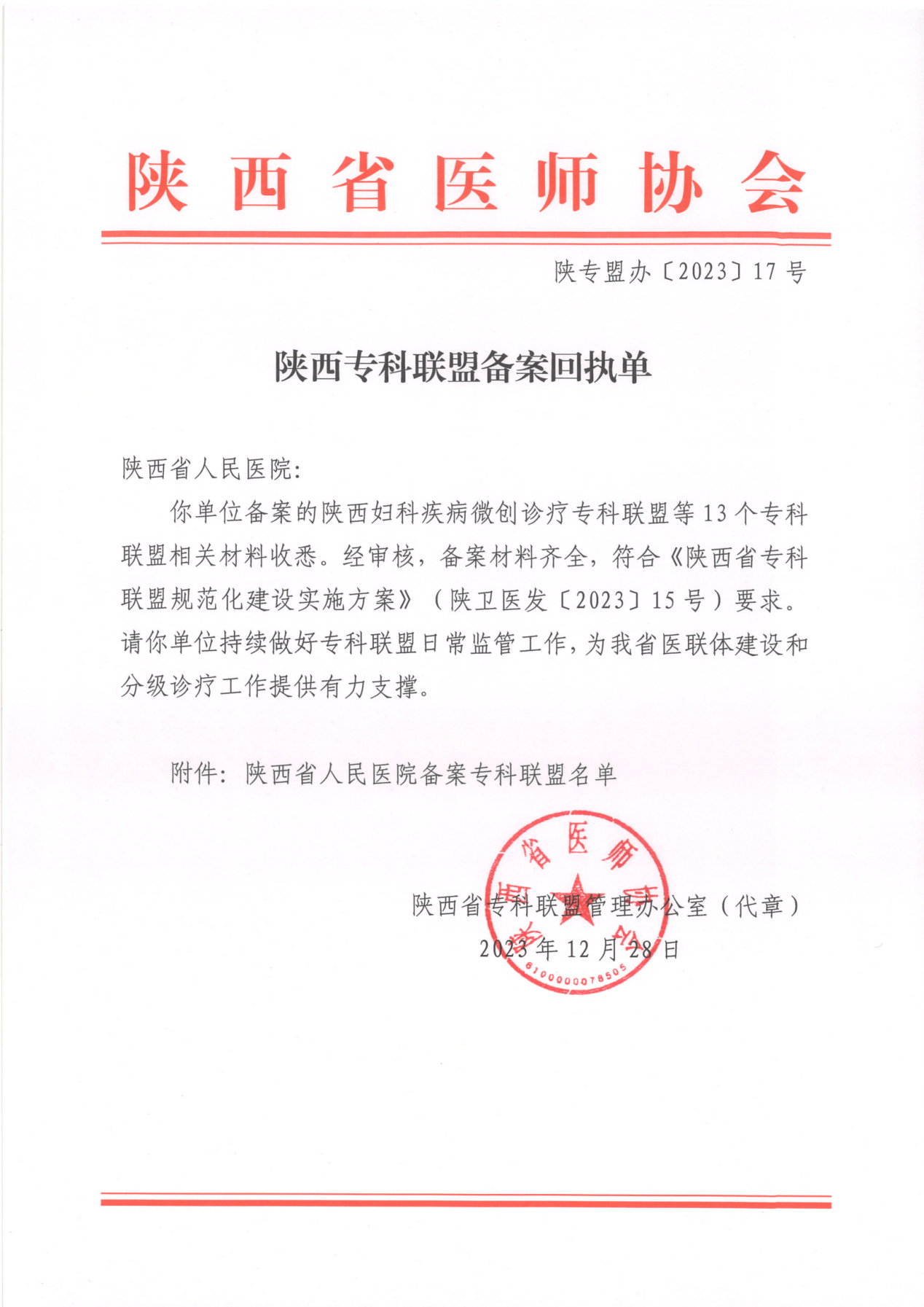 在院党委和党政主要领导的亲自指导把关下,在全体班子成员带领下,在全院干部职工的共同努力下,贯彻落实医院高质量发展方案结出了累累硕果,传统佳节春节来临之际,喜讯传来,六合彩网站“陕西妇科疾病微创诊疗专科联盟”等13个专科联盟被陕西省卫健委正式批准为省级专科联盟!
