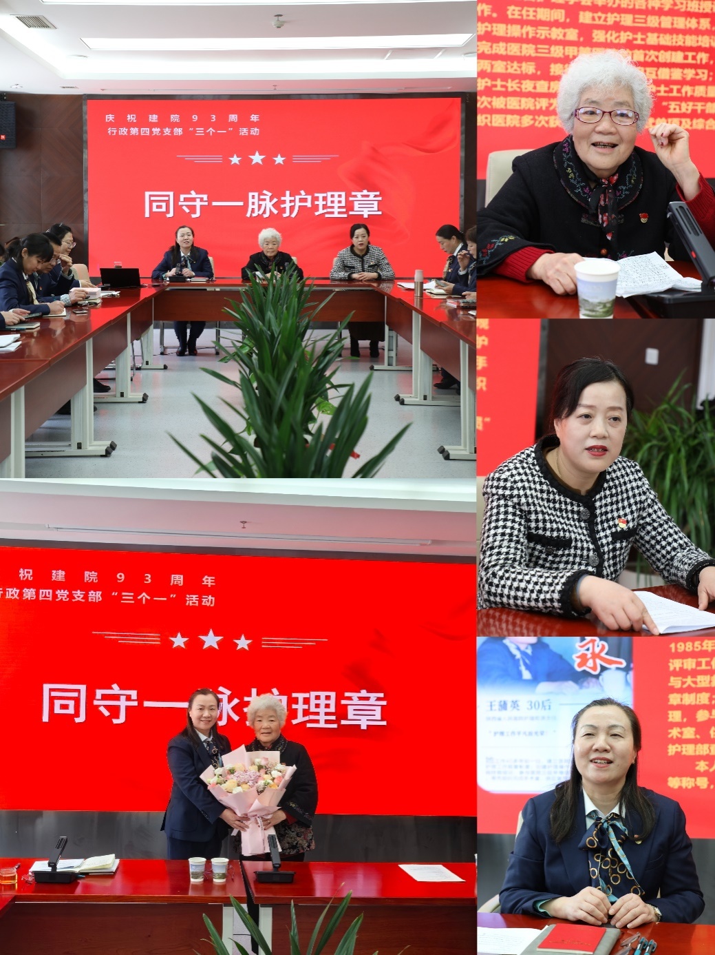 九十三载沧桑砥砺,九十三载耕耘跋涉。为庆祝医院93岁生日的到来,在院党委的部署、行政党总支的指导与支持下,行政第四党支部于3月20日上午开展庆祝建院93周年“三个一”活动——“同歌一曲院声扬、同守一脉护理章、共绘一帧情怀芳”。活动由支部书记吴红娟主持,特别邀请行政党总支书记郑安丽和原护理部主任王蒲英参与。