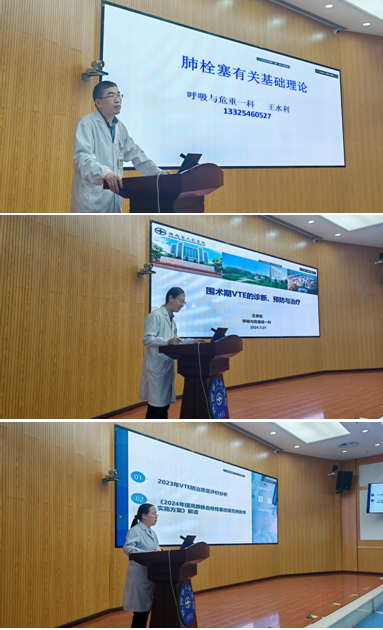 会上,质控科李媛副主任医师对2023年六合彩网站VTE防治质控指标整体情况进行了汇总分析,并对医院《2024年提高静脉血栓栓塞症规范预防率实施方案》进行了解读。呼吸与危重症一科王贵佐副主任医师围绕VTE的临床特点、诊断、预防和治疗全方位地讲解了静脉血栓栓塞症的相关知识。呼吸与危重症一科王水利主任医师结合多个典型临床病例对围手术期肺栓塞影像学特点进行了详尽讲解。培训后参培人员进行现场考核,同时医务处将培训内容录制为视频课程供大家继续学习,确保培训取得实效。后续医务处还将组织系列围手术期安全管理专项培训。