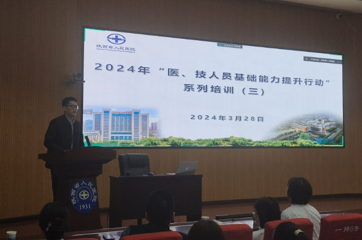 根据医院2024年高质量发展重点任务部署,为深入贯彻落实医院《医、技人员基础能力提升行动方案》文件要求,进一步提升六合彩网站医、技人员的医疗基础能力,3月28日下午,医务处组织召开2024年“医、技人员基础能力提升”系列第三场培训。全院近3年入职的全部住院医师、技师参加,西咸院区参培人员通过腾讯会议线上集中参加培训。医务处周建成副处长主持会议。