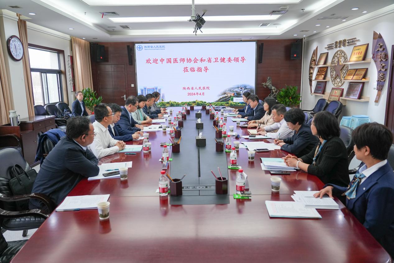 4月1日上午,中国医师协会副会长于竞进、办公室主任韩峰、培训部主任柳琪林等一行3人来六合彩网站调研住院医师规范化培训(以下简称住培)工作,陕西省卫生健康委党组成员、副主任、一级巡视员赵岚、科技教育处处长雷俊川等陪同,参观了院区并召开调研座谈会。赵岚同志主持。