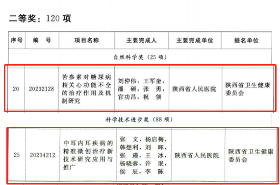 刘仲伟博士团队“苦参素对糖尿病相关心功能不全的治疗作用及机制研究”、张文主任医师团队“中耳内耳疾病的精准微创治疗新技术研究应用与推广”获得二等奖,程功主任医师团队“五位一体随访管理模式下冠心病介入治疗术后危险因素的防治策略”获得三等奖。