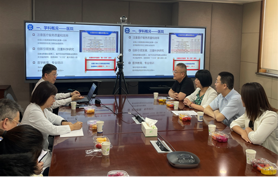 神经外科的历史、现状及医疗特色和科研教学人才培养情况,表达了本次参观学习的目的和今后两个科室长期“结对子”协同发展的需求。期望以此次学习交流为起点,两个科室在业务往来、人员培训、科研合作、学科建设等方面紧密联系。
