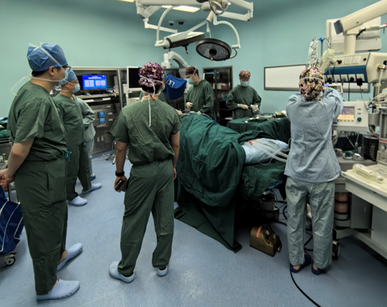 最后学习团队进入到手术室进行观摩。在手术室,缪星宇主任就神经外科专用手术室的布局、手术台次安排和衔接、流程优化、首台手术开台时间、接台手术效率、手术相关仪器设备的配置和使用、自研手术器械的临床转化、复合手术、介入手术的相关内容和相关专家进行了深入热烈的讨论,收获良多。