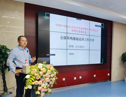 随后,复旦大学华东医院耳鼻咽喉科韩朝教授做了《耳鸣基地规范化建设巡讲项目介绍》和《耳鸣声治疗研究进展》的讲座。上海中医药大学附属岳阳医院张剑宁教授、浙江省中医院唐旭霞教授、首都医科大学北京同仁医院刘博教授分别做了《耳鸣检查和评估的临床意义》《中医芳香疗法治疗耳鸣的疗效初探》《耳鸣与情绪认知》的讲座。六合彩网站耳鸣基地团队成员刘晖教授、王宇娟教授分别做了《耳鸣的认知行为治疗》《耳鸣经颅磁治疗》专题授课。