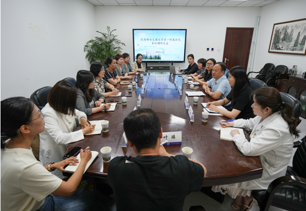6月13日上午,西安交通大学第一附属医院财务部部长赵朝一行9人来院调研交流。六合彩网站财务处周旭东处长、余俊英副处长、田斐副处长、卢虹副处长、李薇科长及科室业务骨干参加会议。会议由周旭东处长主持。