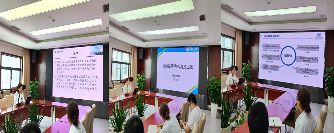 培训中,感染性疾病科曹宁家副主任结合自己丰富的临床实际经验,主讲了感染性腹泻和需要重点监测的腹泻传染病诊断标准、流行病学、治疗和防控等内容。预防保健科马芬主管护师就食源性疾病的范畴、上报流程及哨点医院的工作任务进行了深入解读和讲解,强调医生在接诊疑似食源性疾病患者时,应详细询问病史,特别是饮食史,结合临床表现和实验室检测结果,及时作出诊断并上报。预防保健科石峰医师对围绕传染病相关法律法规、常见传染病诊断报告标准、上报流程,并对上半年传染病上报进行了工作总结,强调上报的时效性与准确性,客观分析了存在的问题与挑战。同时为巩固培训效果,对全体参会人员进行了线下考核,考核通过率100%,并要求各科室传染病联络员及时组织科室全体医务人员进行集中学习。