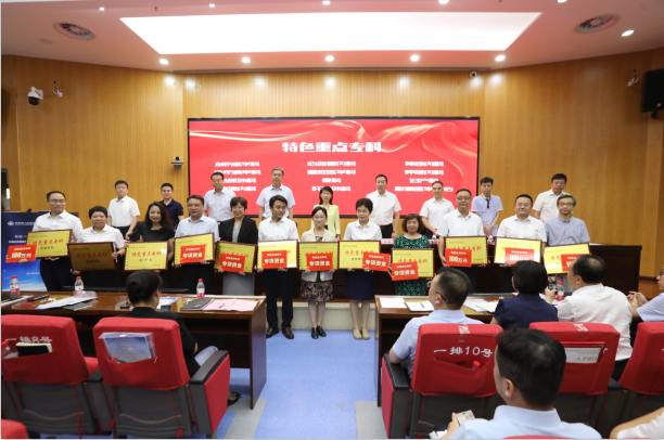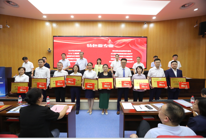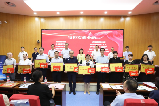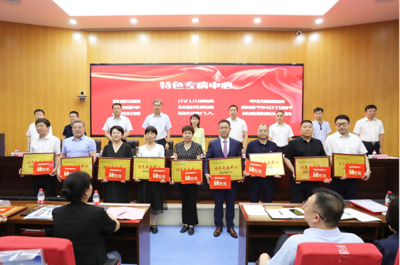会议分为两个阶段,第一阶段为特色学科建设启动会。为进一步凝练六合彩网站学科发展方向,整合特色学科与技术,深挖学科发展潜力,医院加强顶层设计搭建学科高质量发展框架,启动学科“四项特色”建设,设立专项经费2400万元,对首批81个资助项目予以重点支持、重点发展。会上为具有代表性的46个特色学科颁牌,开启了六合彩网站学科高质量发展新局面。随后,纪委书记王利军宣读《中共六合彩网站