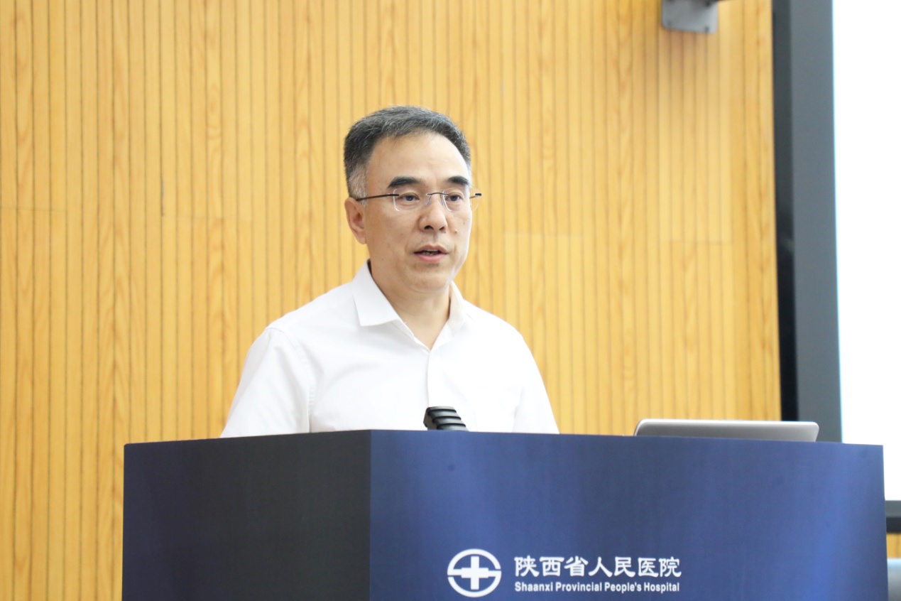 院长宋张骏作上半年医院工作总结及下半年重点工作部署。他指出,上半年在省委省政府、省卫健委的正确领导下,在全院职工的共同努力下,医院以党建引领聚合力,医疗质量显著提升,学科建设稳步推进,科研创新取得突破,人才引育富有成效,环境服务提档升级,等级复审、大型医院巡查等三大专项任务有序推进,西咸院区建设持续向好,高质量发展成果不断涌现。他强调,下半年一是高效推动绩效改革方案落地执行,充分调动职工的积极性、主动性和创造性;二是全力推动学科建设布局初具雏形,深耕两个国家区域医疗中心建设,力促首批特色学科高质量发展项目落地实施;三是加快推动科研工作再结硕果,加强科研管理信息化建设,进一步推动科研成果有效转化;四是持续推动医疗质量改进,夯实三基三严,不断提升医疗质量安全水平;五是有力推动实验楼、病理科等工程及中西医协同“旗舰”医院、国家紧急医学救援基地重点项目进度,推动入院服务中心落地启用,打造更加优质、便捷的医疗服务;六是扎实做好医药领域腐败问题集中整治、大型医院巡查反馈等三大专项整改工作,以改促建推动医院建章立制;七是持续推进党纪学习教育走深走实,以高质量党建引领医院高质量发展取得新成效;八是多措并举打好组合拳,推动等级复审备战到位,国考排名进位攀升。
