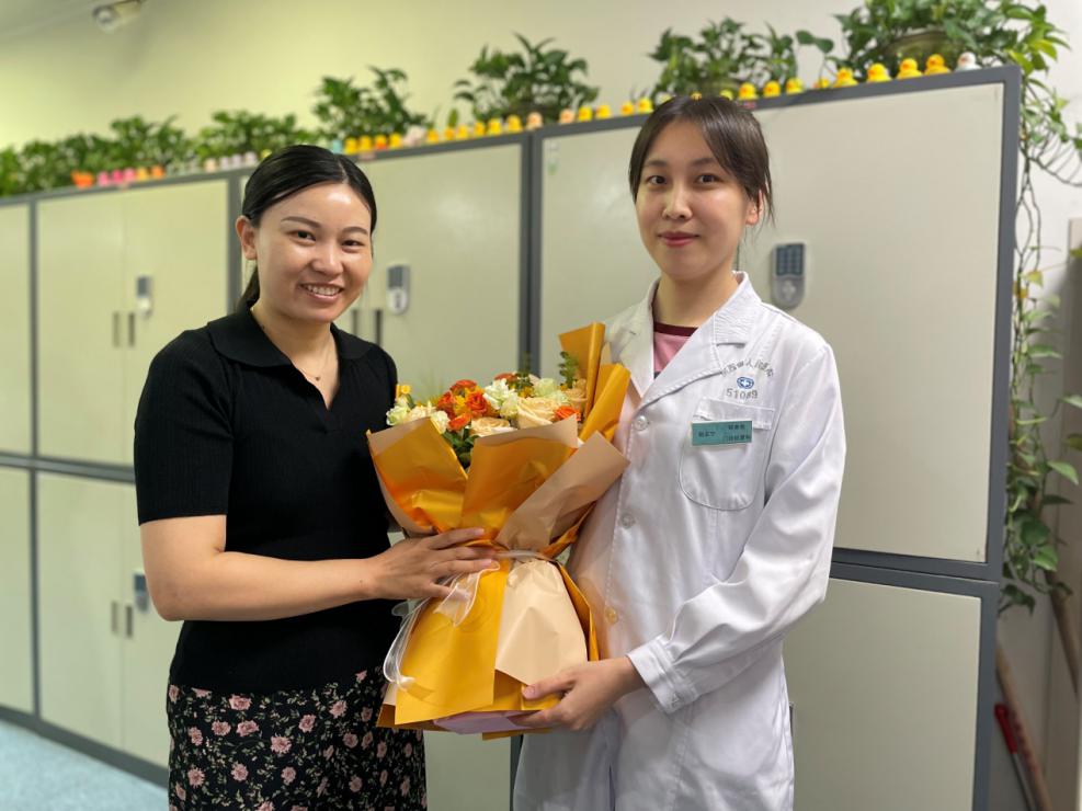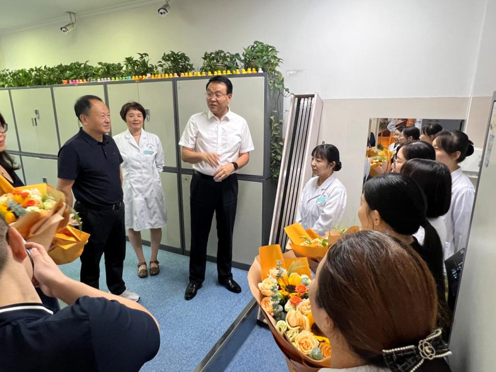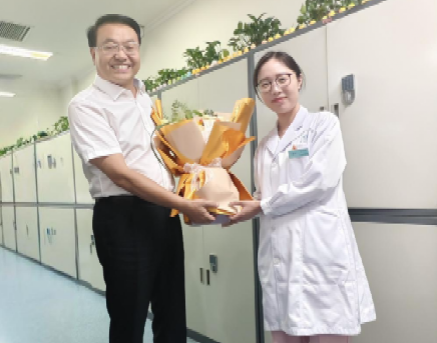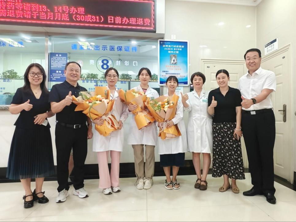 9月6日上午,马富春副院长带领财务处周旭东处长、余俊英副处长、田斐副处长到一楼大厅门诊结算窗口,对牛敏芳、张东芳、赵志宁等3名2024年季度服务之星进行表彰颁奖。马富春副院长对财务窗口人员进行了慰问,表达了对基层员工的关爱,同时对财务窗口工作提出要求,勉励大家要继续努力,以“服务之星”评选为契机,以优秀模范为学习榜样,把为患者提供便捷、耐心、热情的服务作为持续追求,立足岗位、强化本领,以实际行动助推患者就医体验提升。