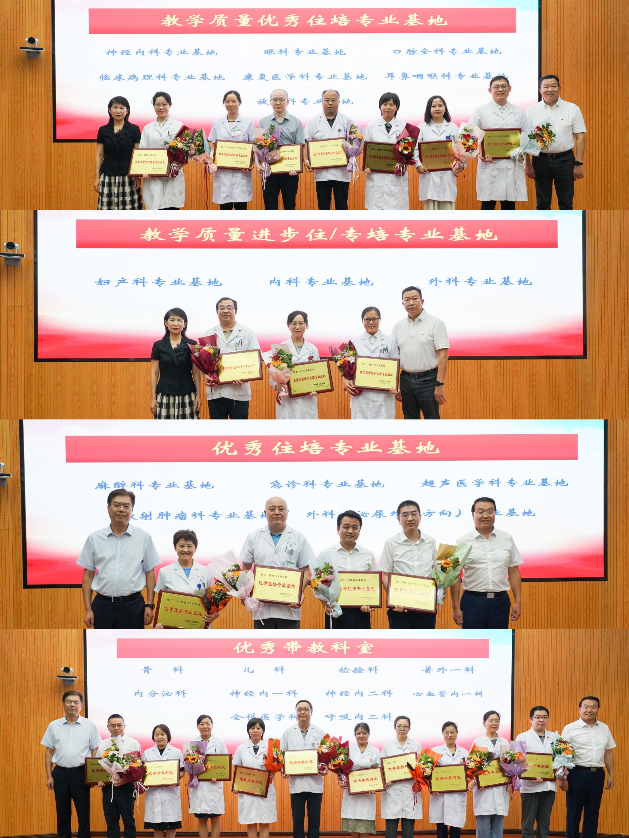 关于表彰2023-2024学年度优秀教学集体、优秀教师、优秀教学管理者的决定》两个文件。院领导依次为获奖的集体和个人颁奖,希望大家能够向优秀学习,知责于心,担责于身,履责于行,为培养合格的医学人才不断奋进。骨科专业基地主任刘时璋、放射科专业基地教学主任黄颖、教学比赛获奖代表马浩鑫老师分别作为获奖集体和个人分享了各自的教学经验。与会人员一同观看了教师节短片《那些老师教我们的事》。