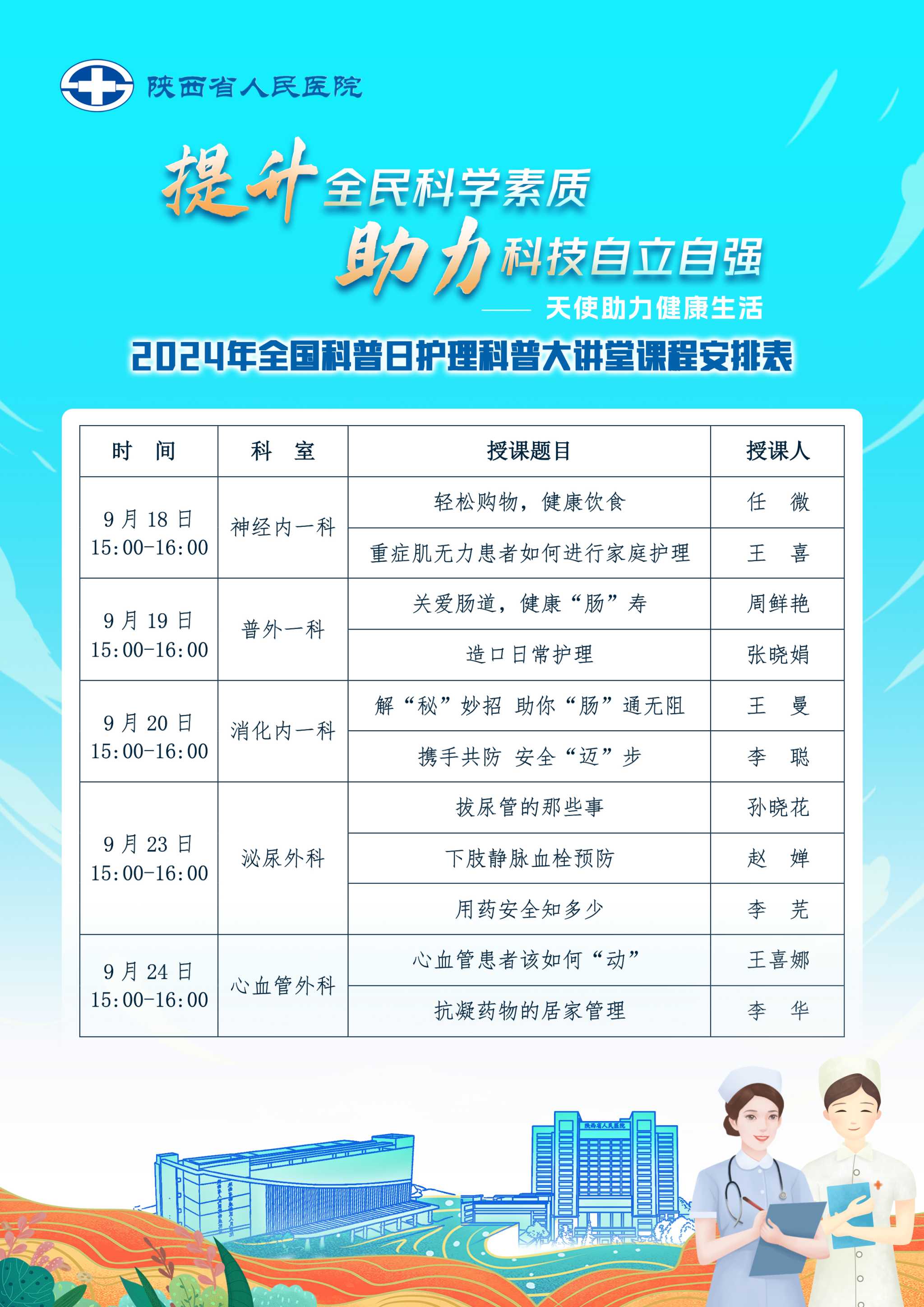 2024年全国科普日护理大讲堂课程安排表