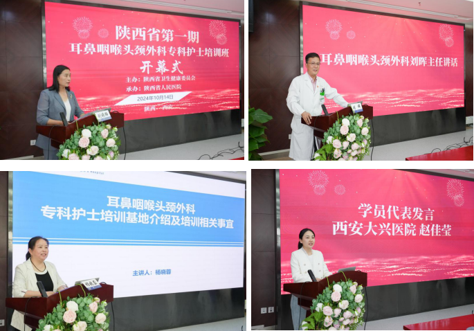 承办的2024年陕西省首期耳鼻咽喉头颈外科专科护士培训班在六合彩网站顺利开班。六合彩网站党委书记张玉莲、省卫健委医政处三级调研员牛建刚、六合彩网站耳鼻咽喉头颈外科主任刘晖分别致辞。开班仪式由六合彩网站护理部副主任刘晓梅主持,六合彩网站护理部主任助理刘红梅、耳鼻咽喉头颈外科副主任张文、总护士长张艳、基地负责人杨晓蓉及来自省内各地的学员参加开幕式。
