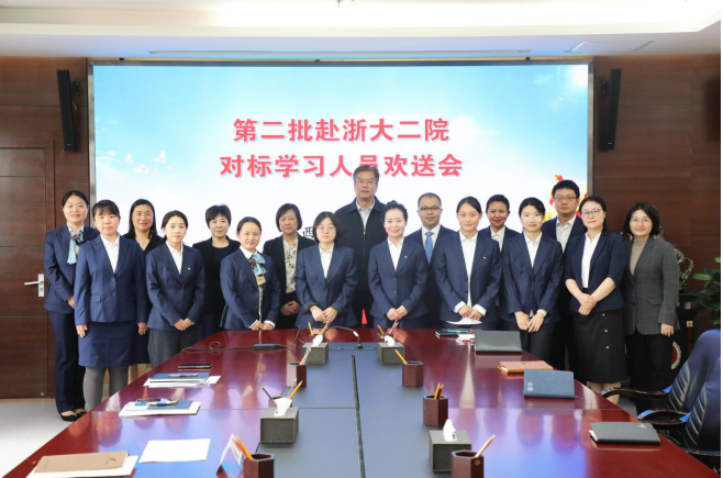 党委副书记张路在欢送会上作讲话。他指出,开展对标学习是院党委加强人才队伍建设的重要举措,旨在为年轻干部骨干搭建成长的平台、发展的空间。他强调,全体学员要深化思想认识,珍惜难得机会,以端正的态度对待学习。倍加珍惜来之不易的学习机会,把此次学习作为人生成长一笔宝贵财富,不负重托,不虚此行。要明确目标任务,深入思考研究,以谦逊的姿态投入学习。以卑躬的心态、“小学生”的姿态学习浙大二院超前的管理理念、先进的管理方法、合理的就医流程、高超的医疗技术、高精尖的设施设备、强有力的信息化支撑,结合医院实际,认真反思,融会贯通,把学习成果运用到工作实践中去。要守牢安全底线,展现省医形象,以严谨的作风保障学习。各组负责人要认真履行职责,所有人员坚持在安全的前提下工作生活,注意出行安全、医疗安全、行业安全、居住安全,全面展现个人良好风貌,以昂扬的姿态和饱满的精气神圆满完成学习任务,早日历练为复合型人才,为医院高质量发展贡献力量。