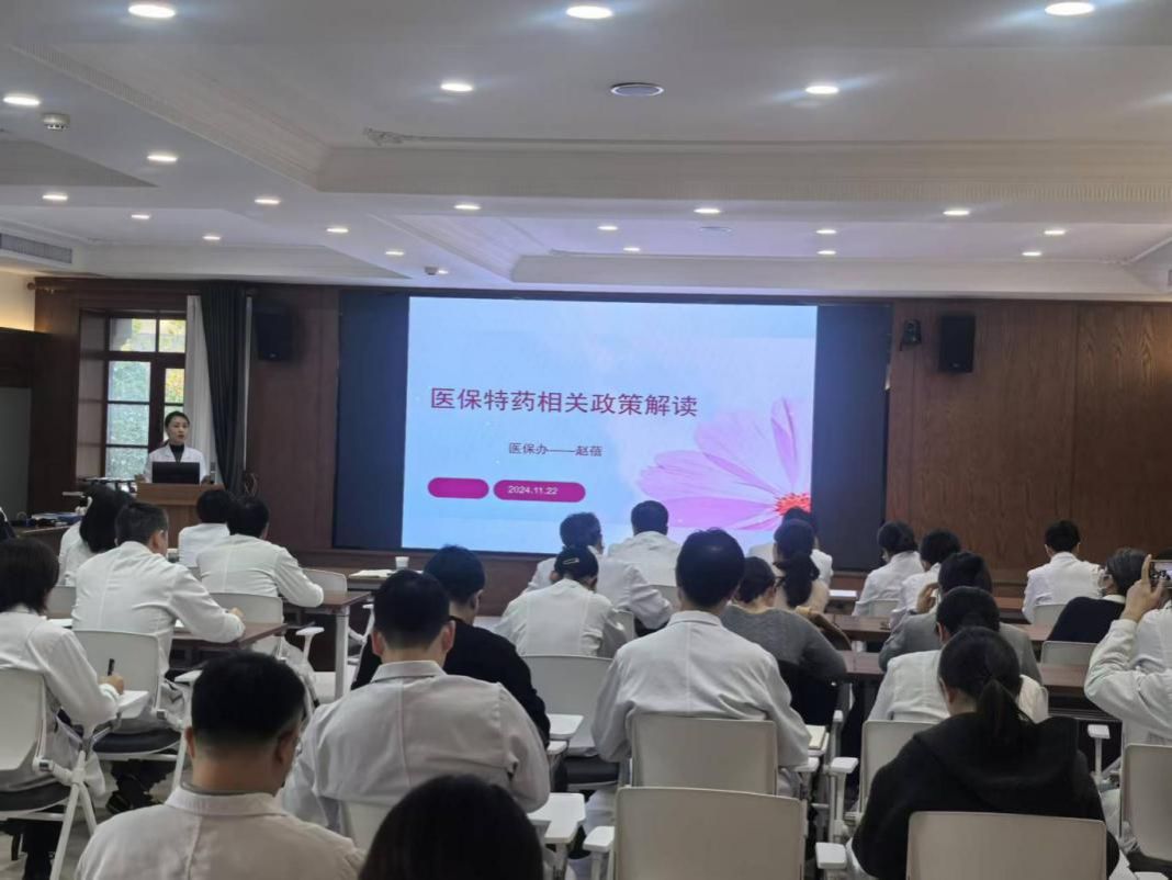 为进一步提升六合彩网站特药责任医师及临床医务人员对医保特药政策的知晓率,有效保障参保人员合理用药和维护医保基金安全,11月22日下午,医保管理处联合药学部组织召开特药医保支付和管理政策解读及鉴定审批流程培训交流会。各临床科室特药责任医师、部分科主任、医保、财务工作人员共59人参加培训交流会。