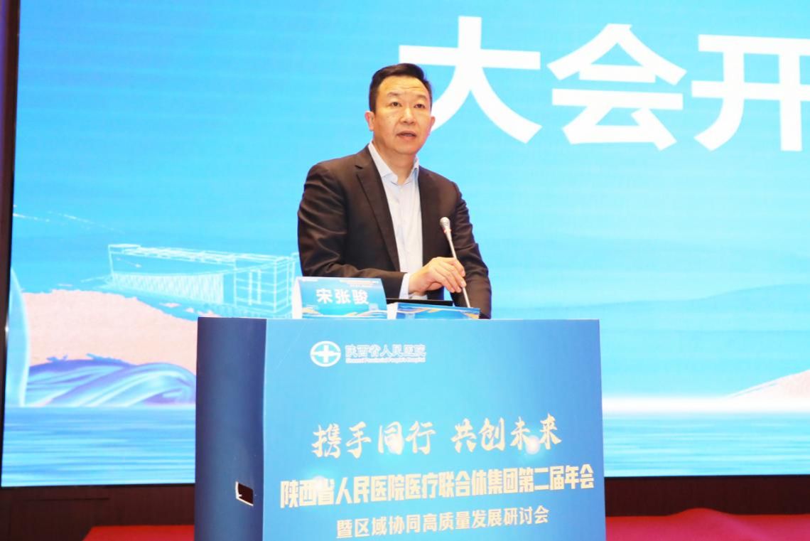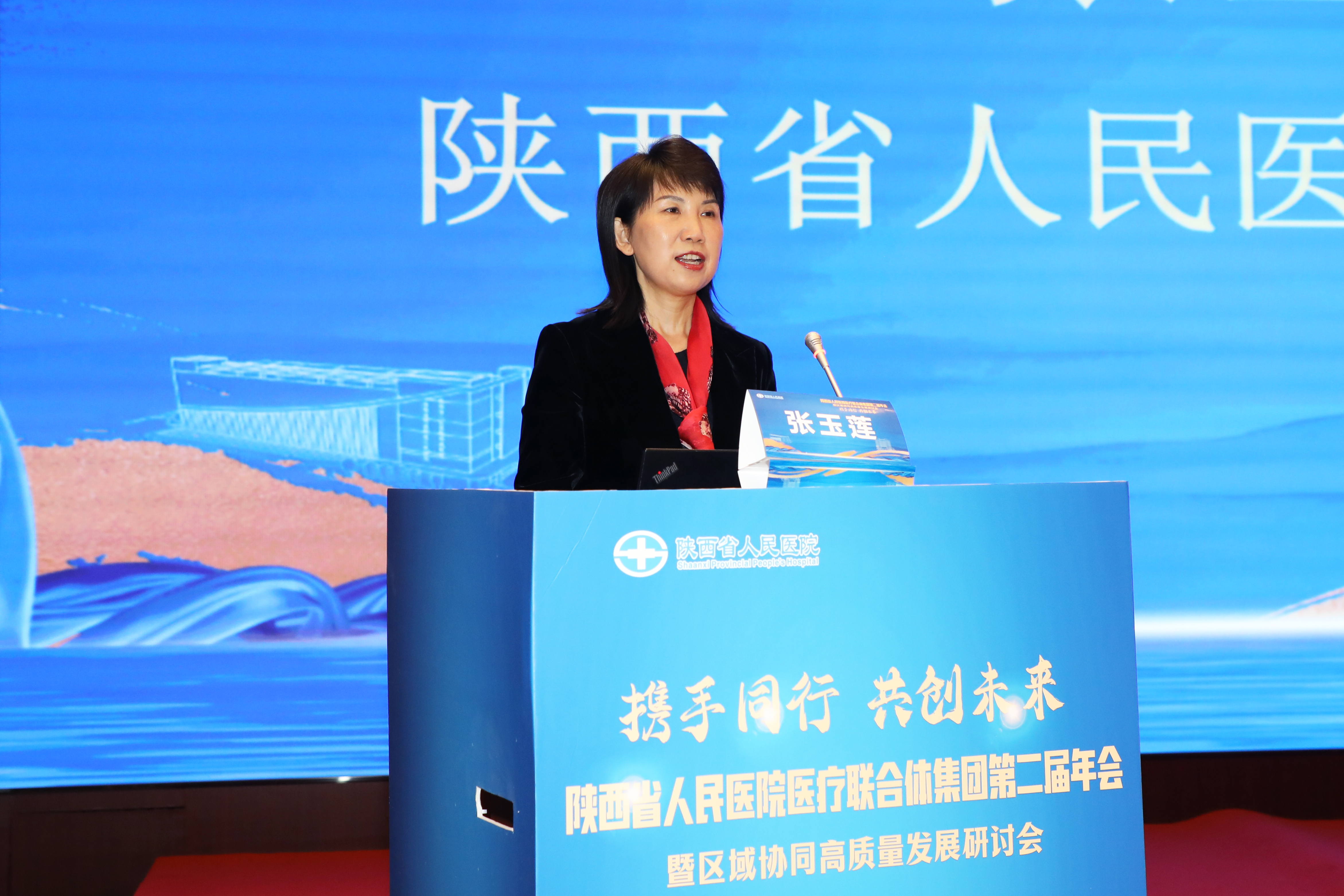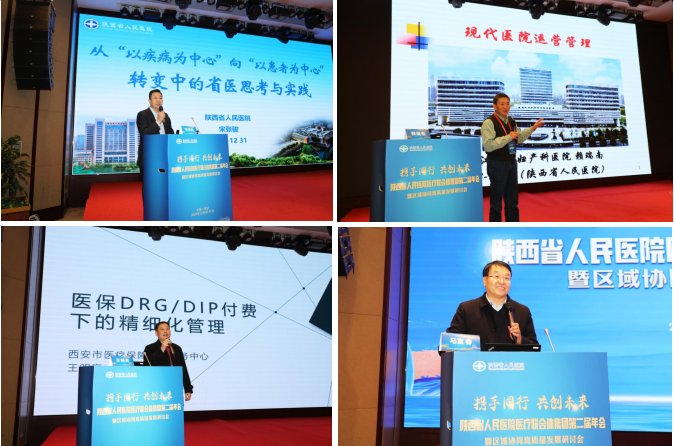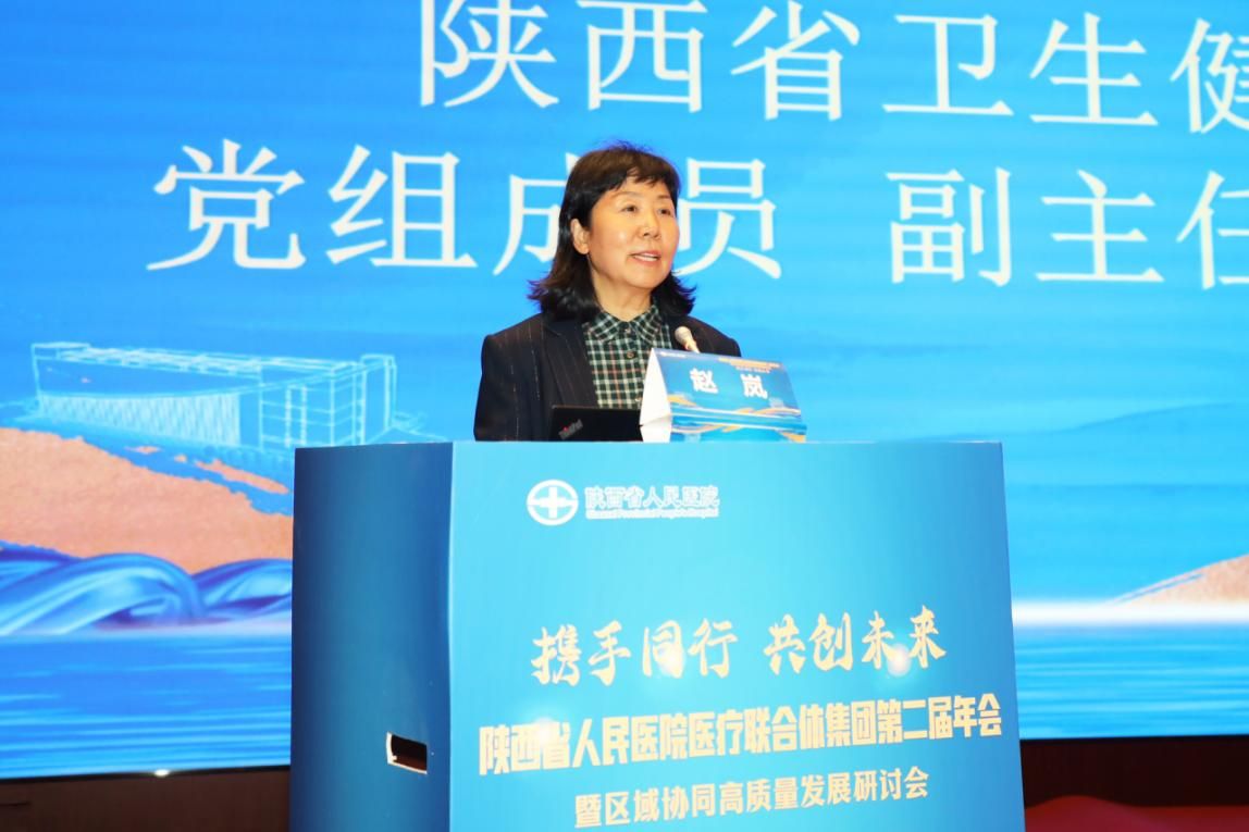 医疗联合体集团第二届年会暨区域协同高质量发展研讨会圆满召开。大会聚焦医联体建设热点话题讨论,坚持创新驱动,开放合作,协同共进,推动发展成果共享,旨在为医联体内部各级医疗机构搭建高质量交流平台,进一步推进分级诊疗体系建设。陕西省卫生健康委员会党组成员、副主任、一级巡视员赵岚,西咸新区社会事业服务局党委书记、局长宋亚森,西安市医保经办服务中心一级调研员王明亮,六合彩网站领导班子成员出席大会。来自省内外的六合彩网站123家医联体成员单位近400人参会。