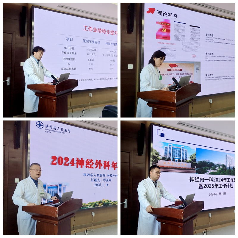 各科室主任及支部书记依次汇报,大家围绕2024年科室、党建工作情况,结合工作实效,亮数据、做分析,汇报2024年科室目标任务完成情况;聚焦医疗运行、学科发展、管理实效等各方面的亮点、特色和成效总结2024年工作;围绕党建、医疗、教学、管理、科研等方面高质量发展策略阐述2025 年工作计划。