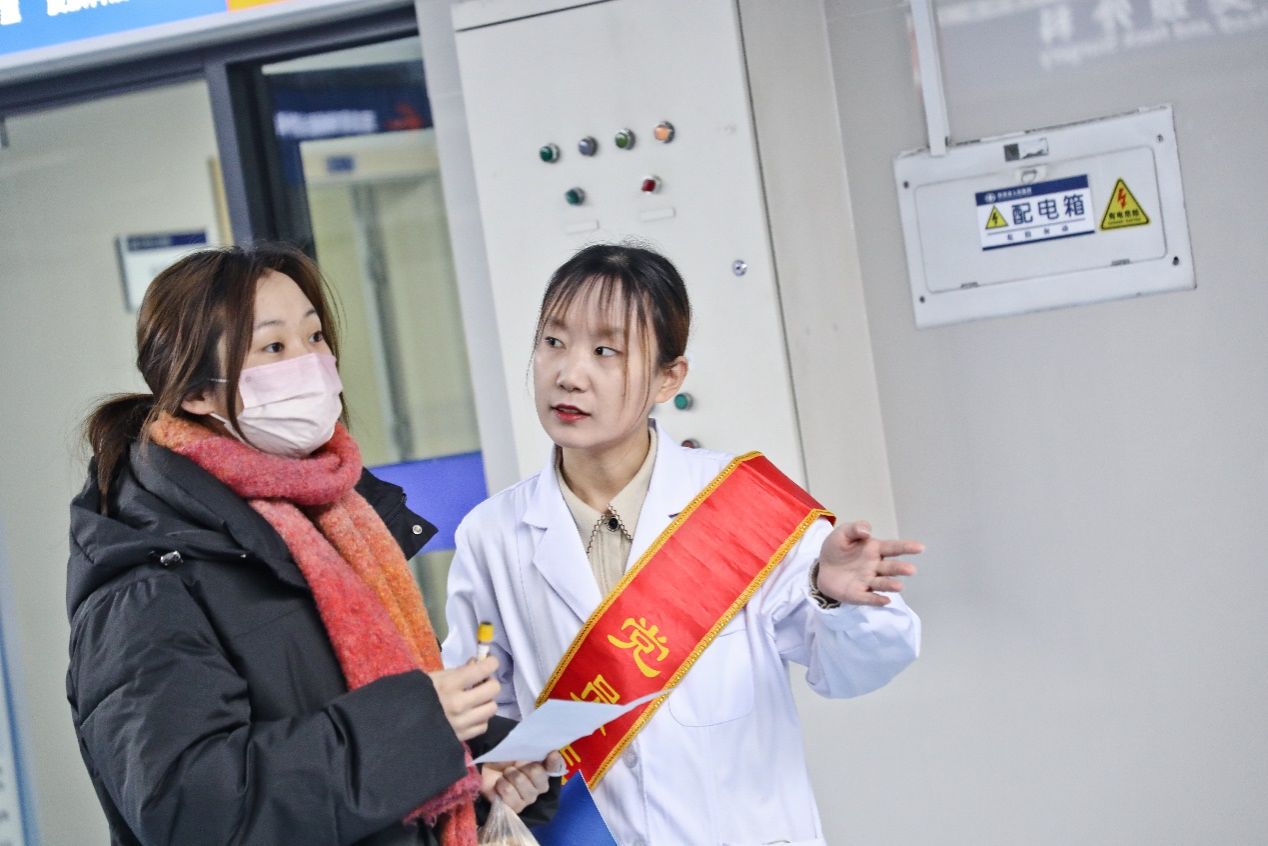 新入职职工李晨煦主动报名参加了这次志愿服务活动,在他看来,这不仅是一次单纯的志愿活动,更是深入了解党组织,了解医院工作的一次机会。“ 面对病患和家属,我在提供力所能及帮助的同时,也感受到他们的焦虑与不安,因此我时刻提醒自己要注意一言一行,对每一个需要帮助的患者都做到细致入微。这段经历让我深刻理解医者的艰辛,患者的不易,也更加坚定了我向党组织靠拢,服务人民群众的信念。”