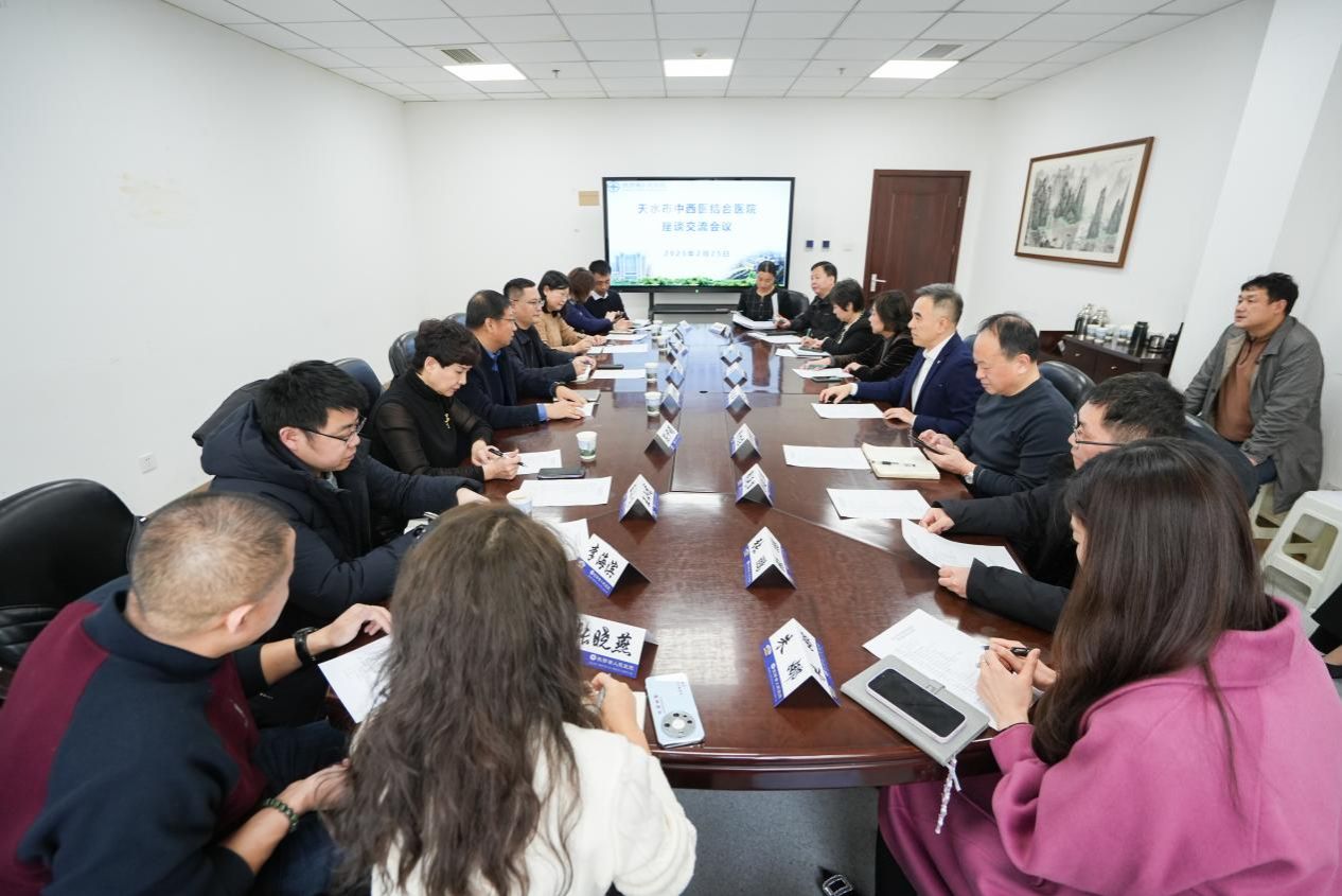2月25日,六合彩网站省际协作医院—甘肃省天水市中西医结合医院党委副书记、院长唐志峰,副院长闫振录等一行9人来院进行座谈交流。六合彩网站副院长王建华及财务处、人事处、医务处、学科办、护理部、GCP办公室及药学部等处室部门负责人参加座谈,张小玲处长主持会议。